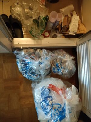 手前の青い袋3つを