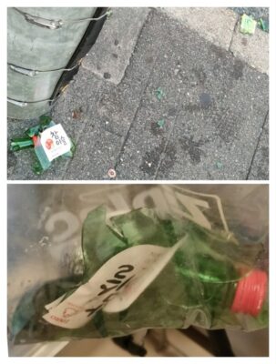 吸い殻と紙ごみ。