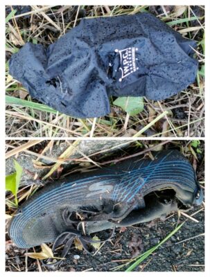 泥だらけの靴片方。