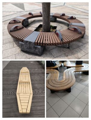 ベンチの形も独特です。