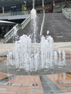 最後に、駅前の噴水の
